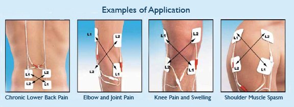 Electrode placement should be in an "X" pattern, as the point of intersection provides a third stronger frequency.