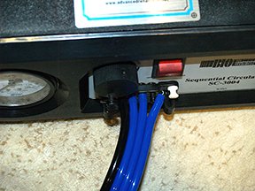Some Bio Compression sleeves use a Black and White Pin Connectors. To properly connect them to a Bio Compression 2004 or 3004 Pump, they need to start in the open position. If they are in the closed position, they will not go in..